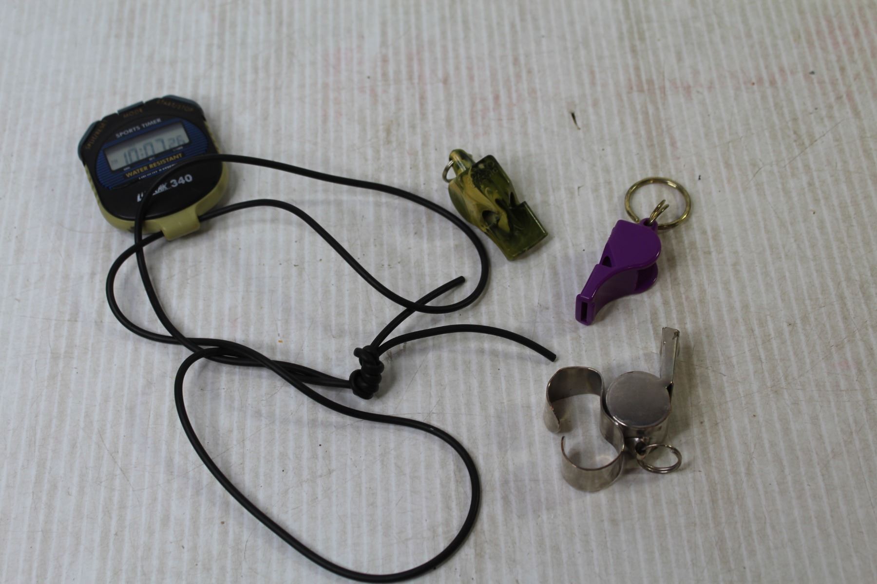 Sports Timer - (3) Whistles - Mouse - Power Cords - Misc. Items