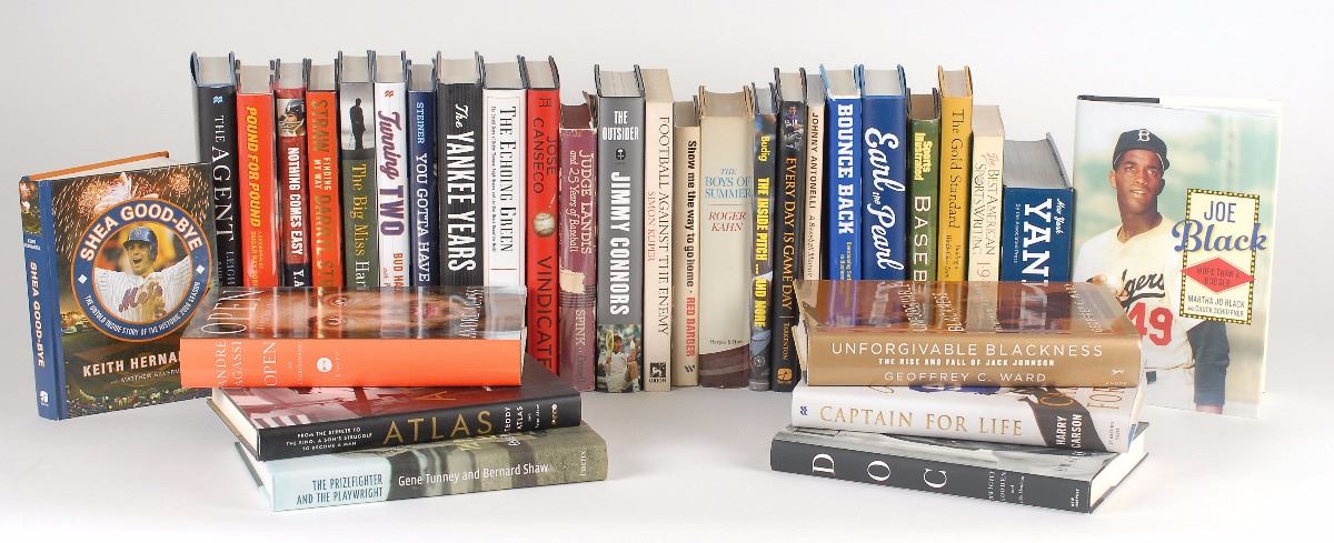 Collection of thirty-two books, mostly hardcover, each signed by the author, including: Andre Agassi; Red Barber; Jimmy Connors; Dwight Gooden; David Halberstam; Mike Krzyzewski; Earl Monroe; Mariano Rivera; Darryl Strawberry; and Joe Torre. In overall fine condition.