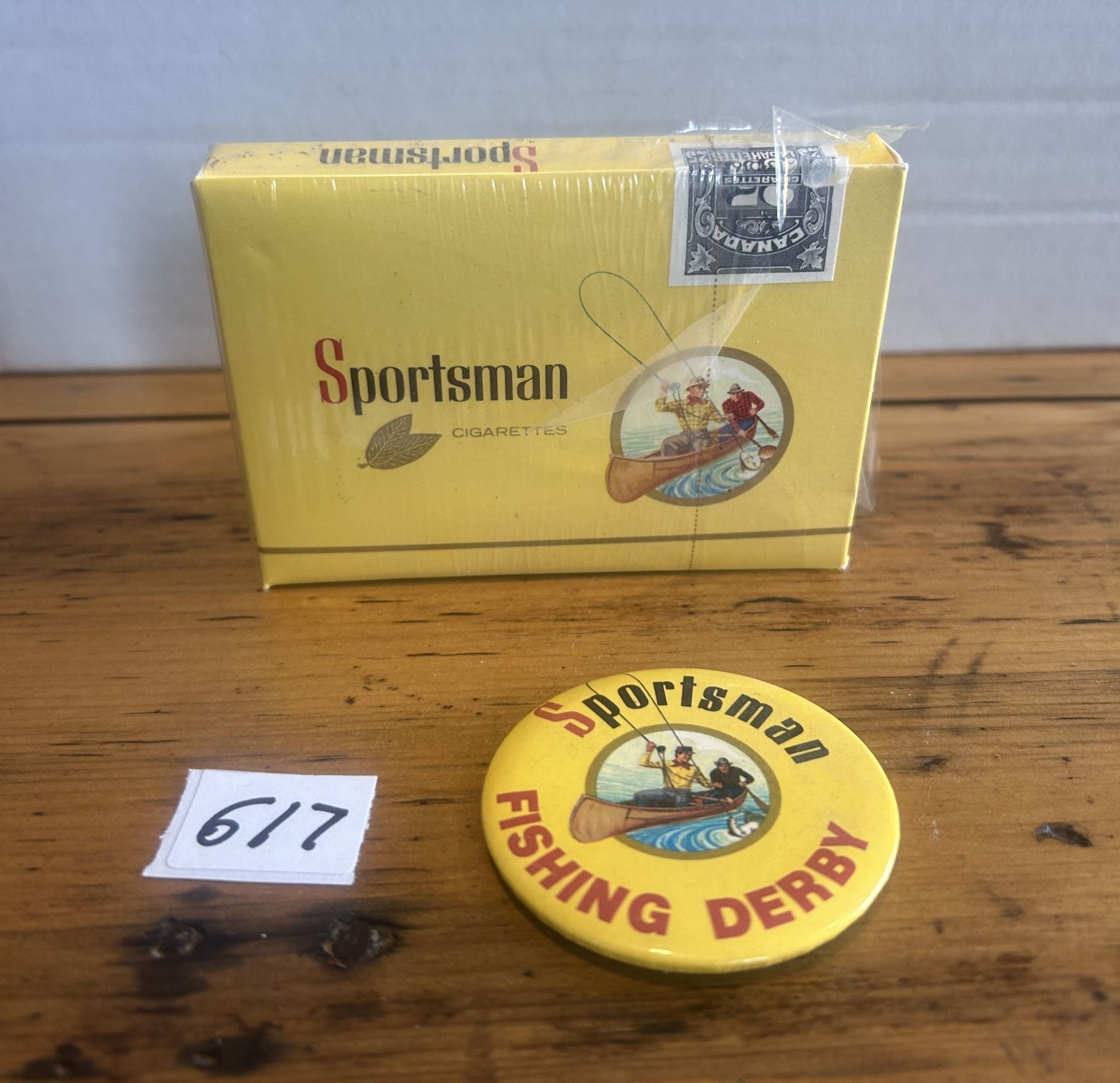 Sportsman pack of unopened cigarettes and pin button