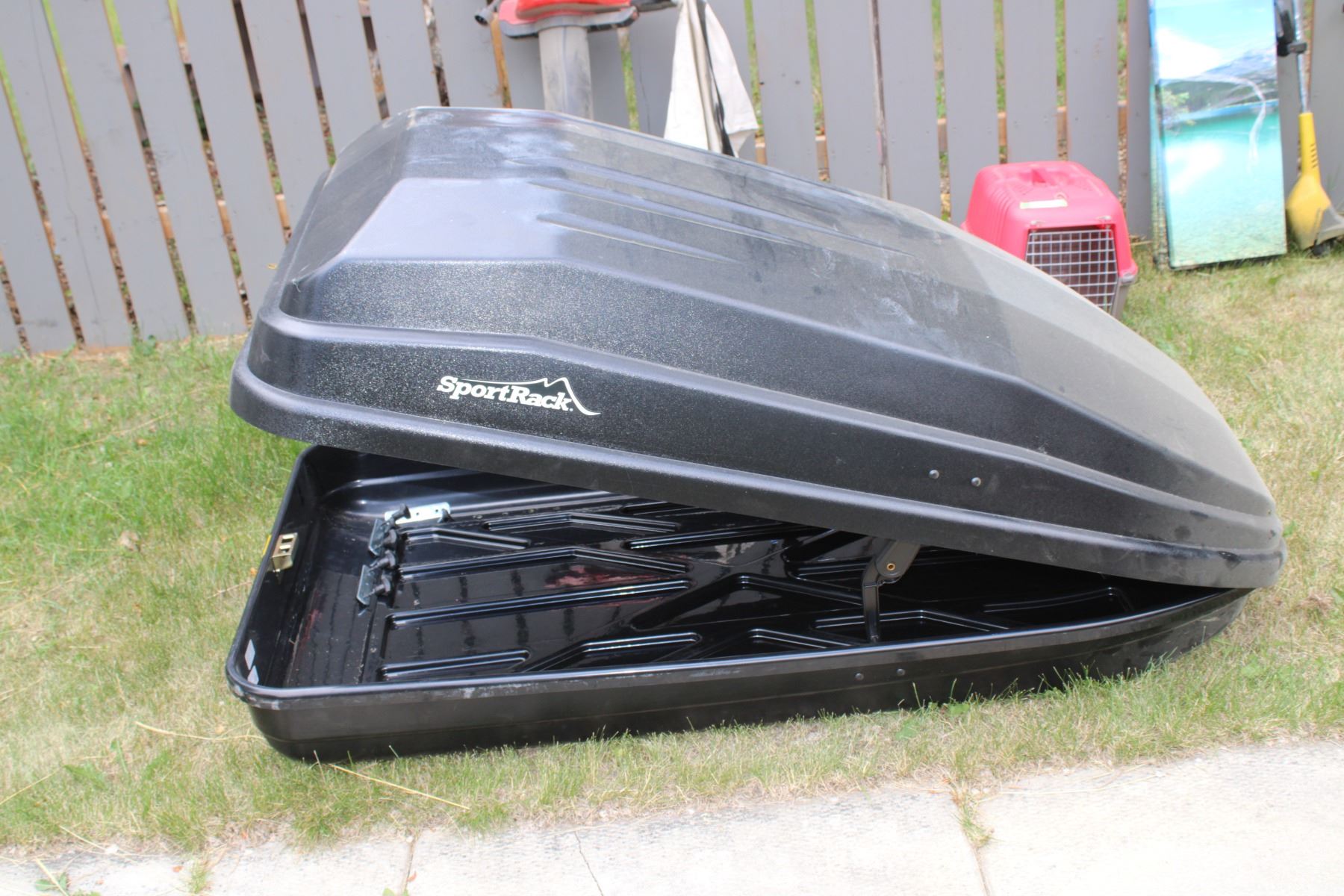 Sportsrack Cargo Box with key and accessories to secure on top of vehicle