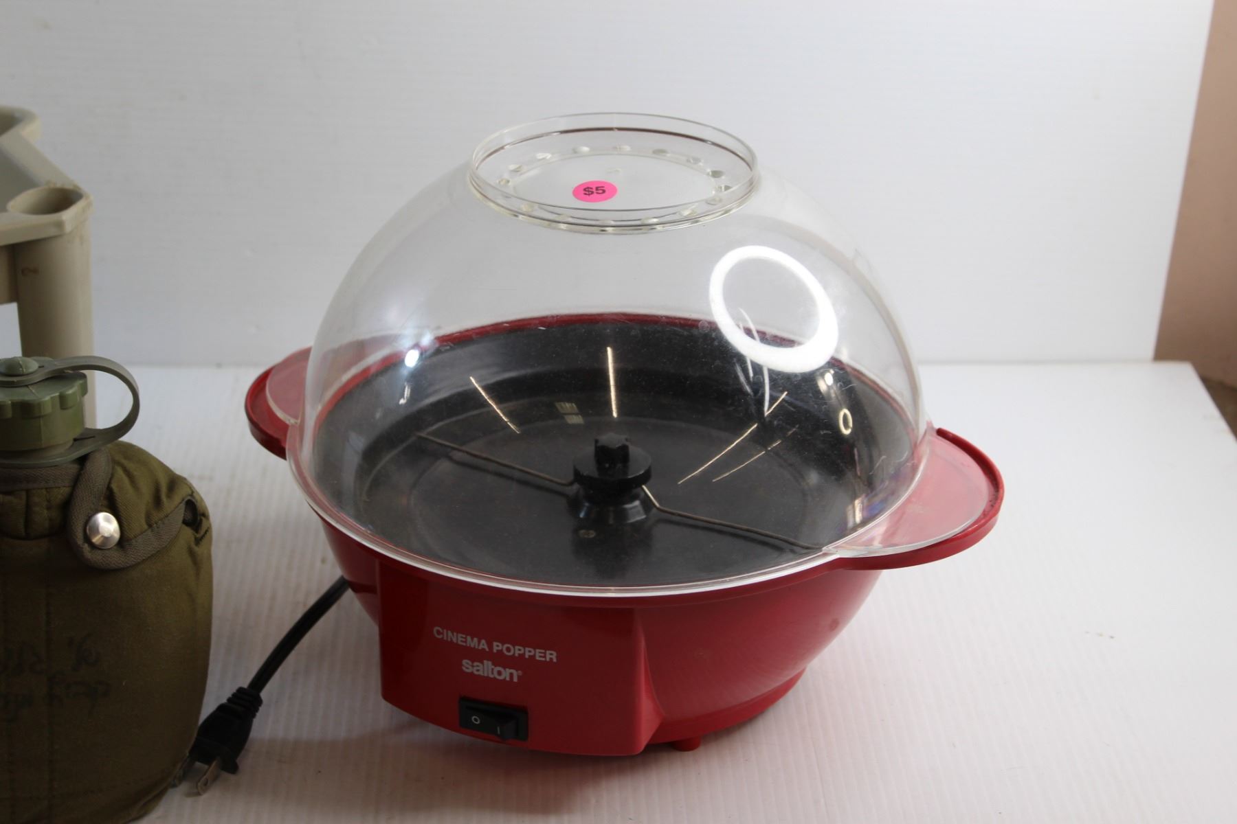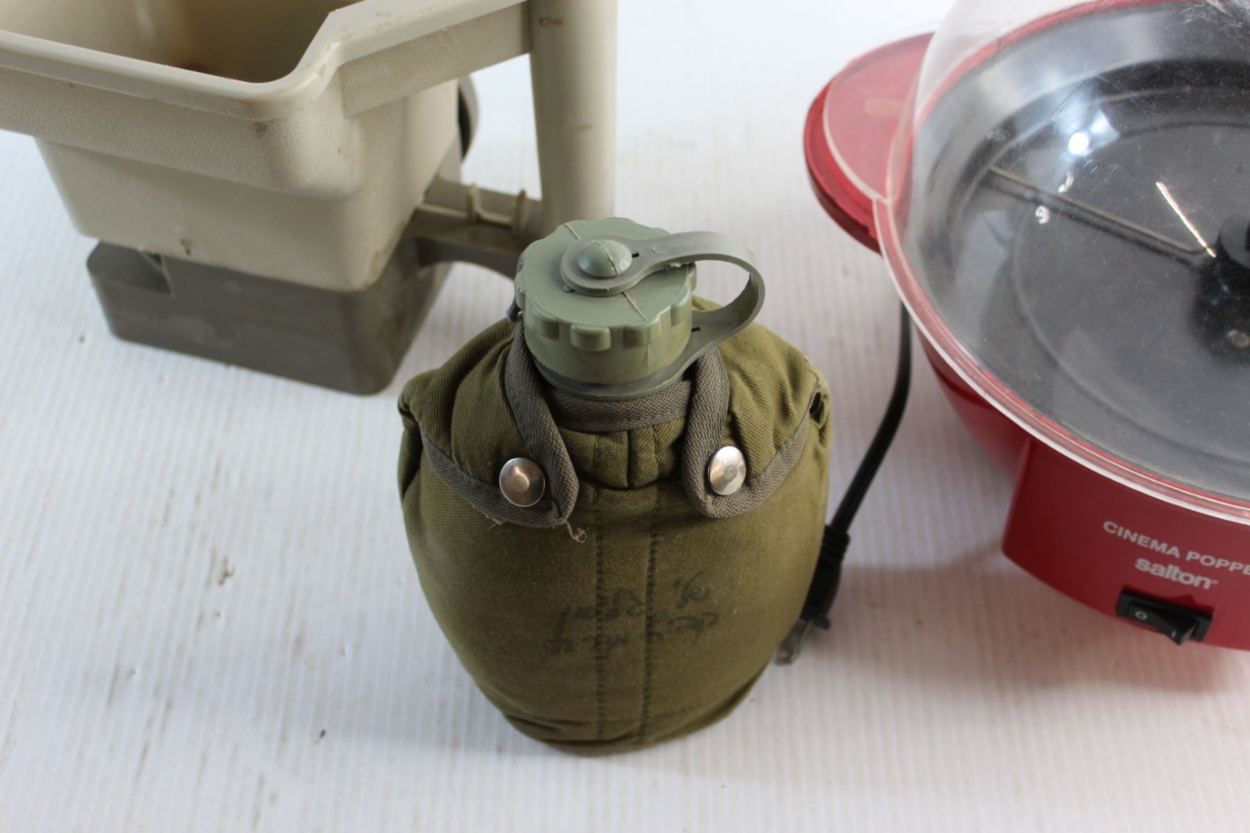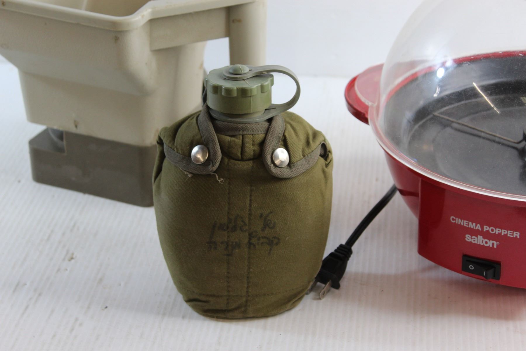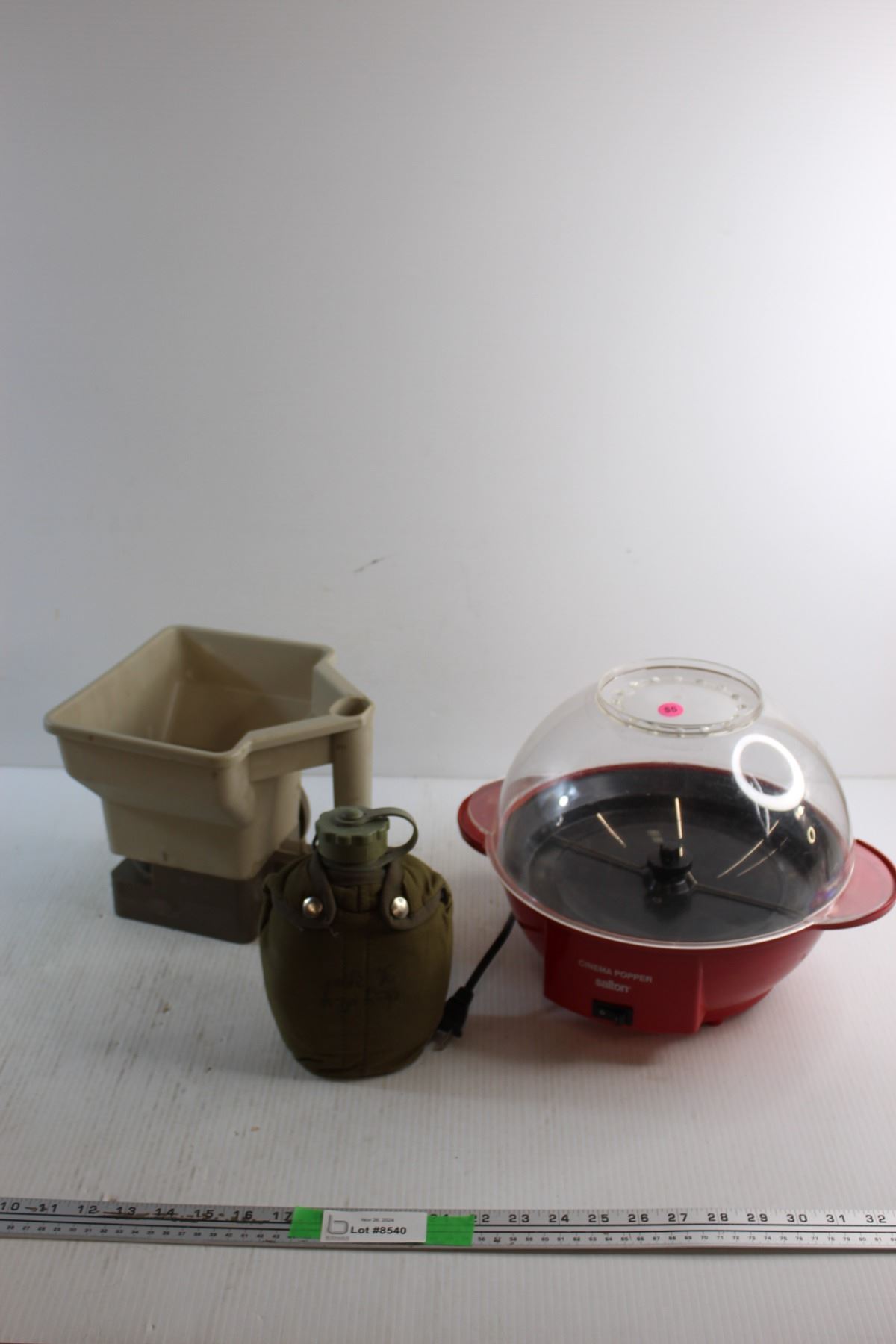 Spreading Fertilizer, Pop Corn Maker - As Is and Military Water Flask