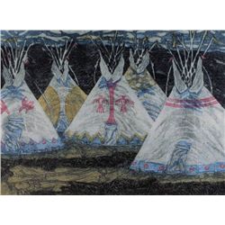 Canadian ASA, CSPWC, RCA [b. 1926] NIGHT TIPIS colour etching on paper; ed. #28/30 17.5 x 23.5 in. (44.5 x 60 cm) signed, titled & editioned