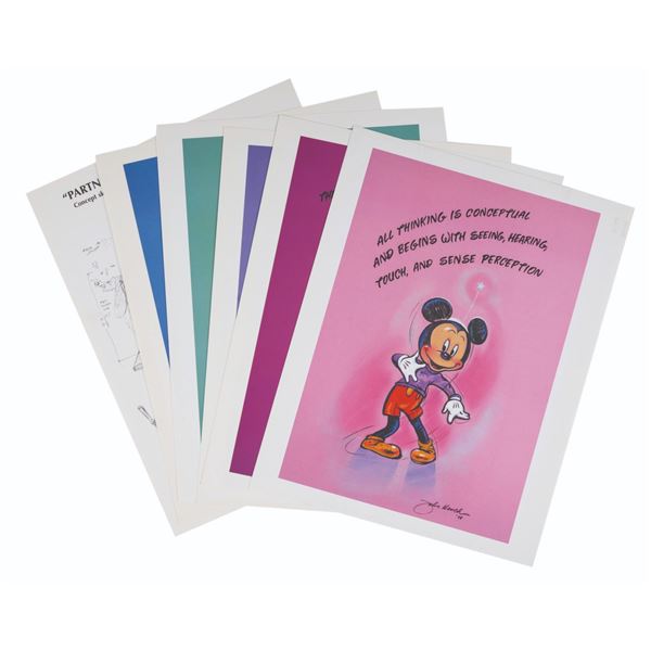 (WDI, 1990s) A set of five motivational prints featuring Mickey Mouse designed by Imagineer John Hench. Also included is a concept sketch for the &q...