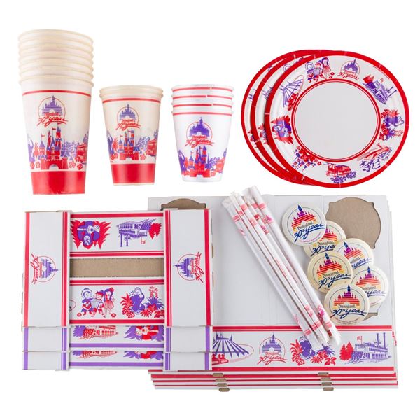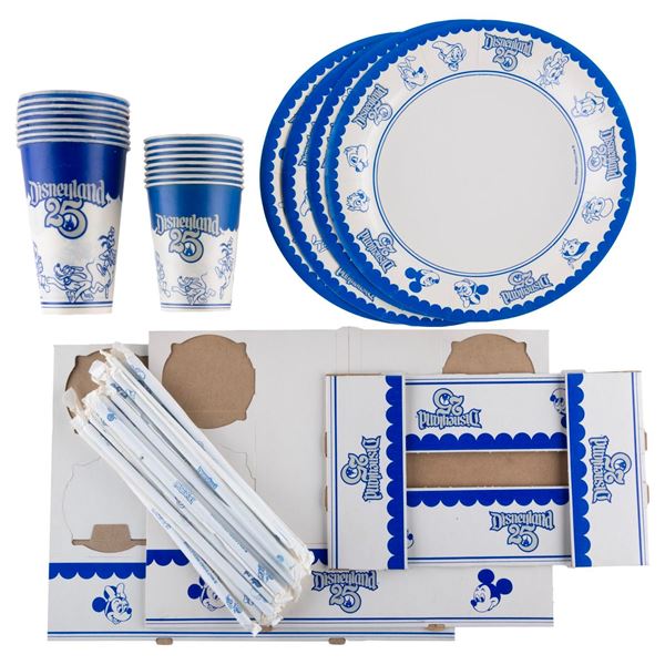 (Disneyland, 1980) A large collection of disposable serveware celebrating Disneyland's 25th anniversary. Included are twenty-one straws, eight s...