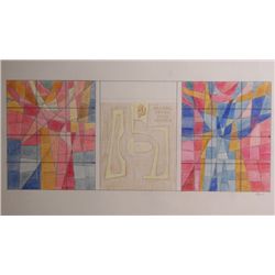 Edgar Britton, Color Pencil (8016-B) Edgar Britton (1901-1981), Color Pencil, Rendering for a the " Chapel of the Holy " stained glass e...