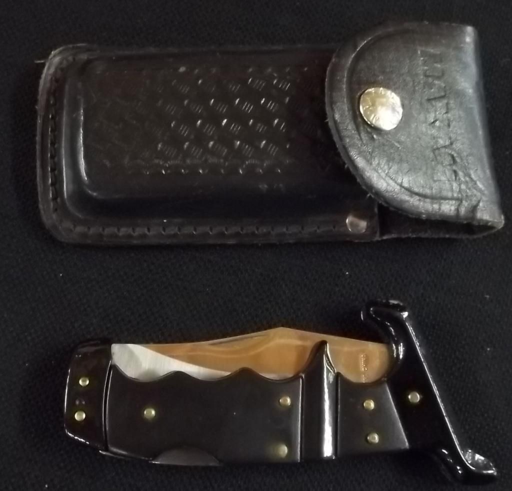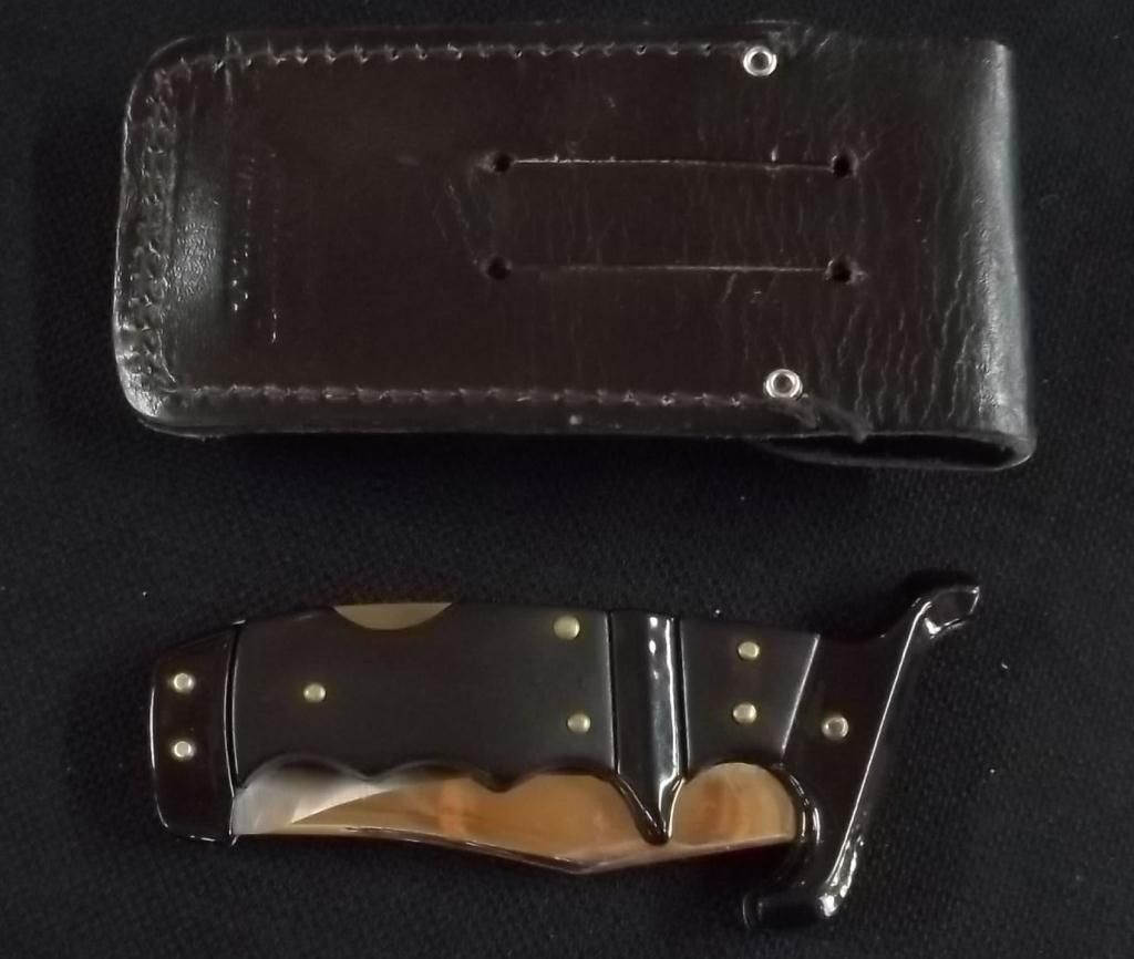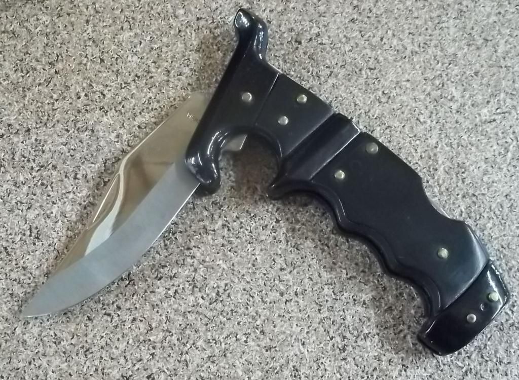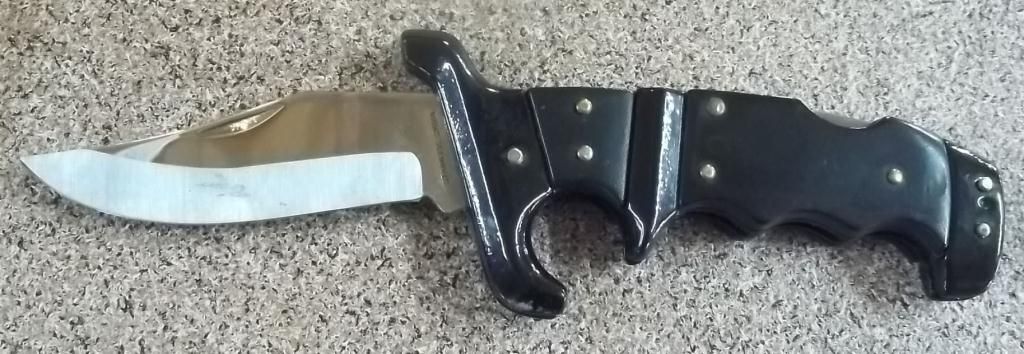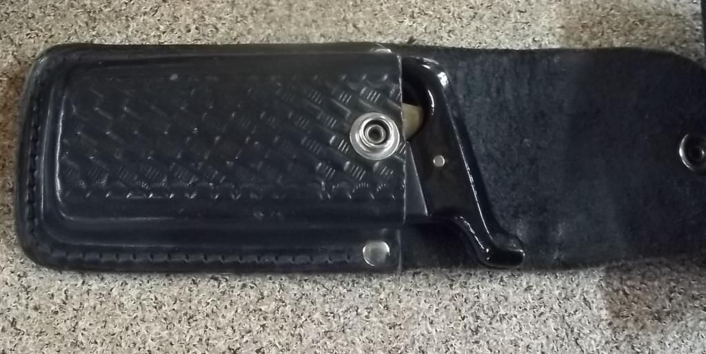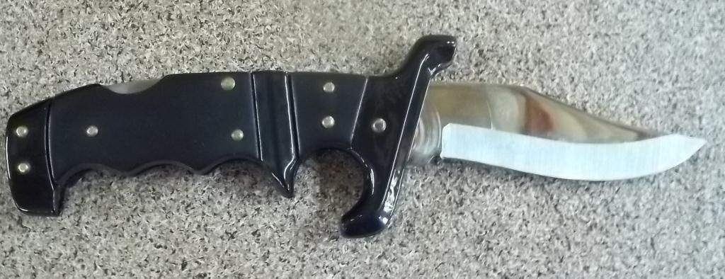 Black Finger Grooved Aluminum Handle W/ Black Leather Sheath.