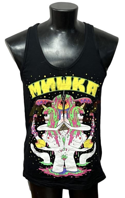 Original tank top worn by "Alien", played by James Franco in the Harmony Korine directed black comedy crime film 'Spring Breakers' (2012), starring James Franco, Vanessa Hudgens, Selena Gomez, Ashley Benson and Rachel Korine. Gomez, Hudgens, Benson and Korine portray four college-aged girls on their spring break in Florida where they meet an eccentric local drug dealer (Franco) who helps them in a time of desperation, and their eventual descent into a world of drugs, crime, and violence.