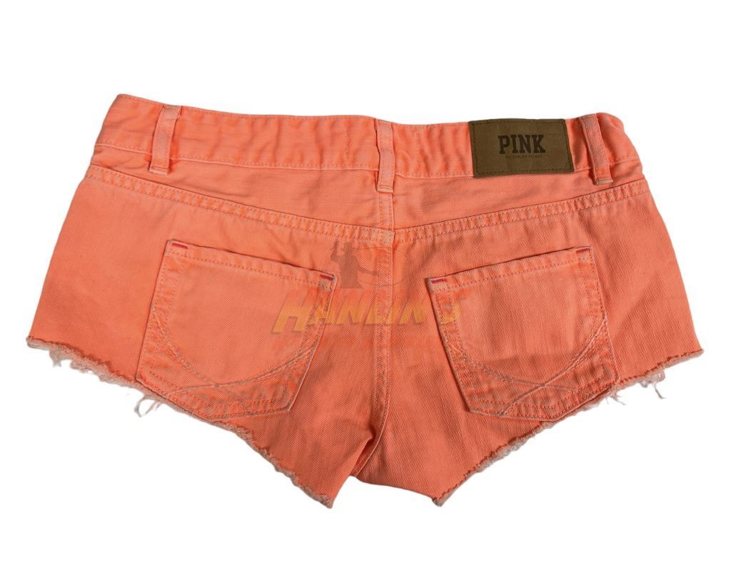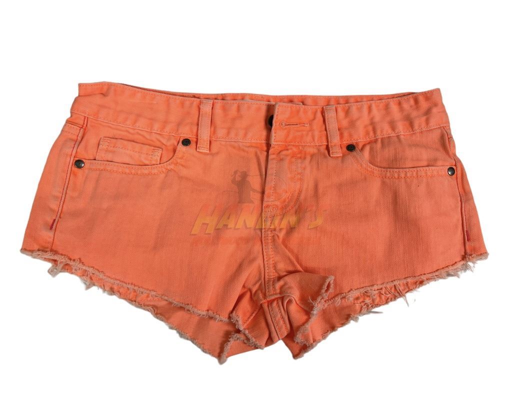 Original orange denim short shorts worn by "Brit", played by Ashley Benson in the Harmony Korine directed black comedy crime film 'Spring Breakers' (2012), starring James Franco, Vanessa Hudgens, Selena Gomez, Ashley Benson and Rachel Korine. Gomez, Hudgens, Benson and Korine portray four college-aged girls on their spring break in Florida where they meet an eccentric local drug dealer (Franco) who helps them in a time of desperation, and their eventual descent into a world of drugs, crime, and violence.