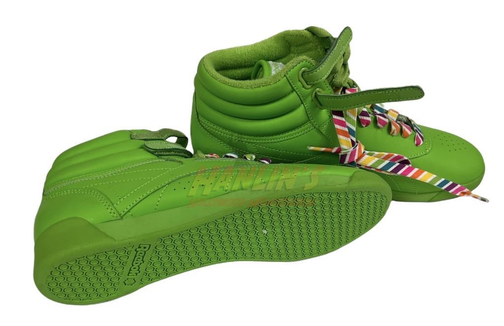 Original pair of green Reebok shoes worn by "Cotty", played by Rachel Korine in the Harmony Korine directed black comedy crime film 'Spring Breakers' (2012), starring James Franco, Vanessa Hudgens, Selena Gomez, Ashley Benson and Rachel Korine. Gomez, Hudgens, Benson and Korine portray four college-aged girls on their spring break in Florida where they meet an eccentric local drug dealer (Franco) who helps them in a time of desperation, and their eventual descent into a world of drugs, crime, and violence.