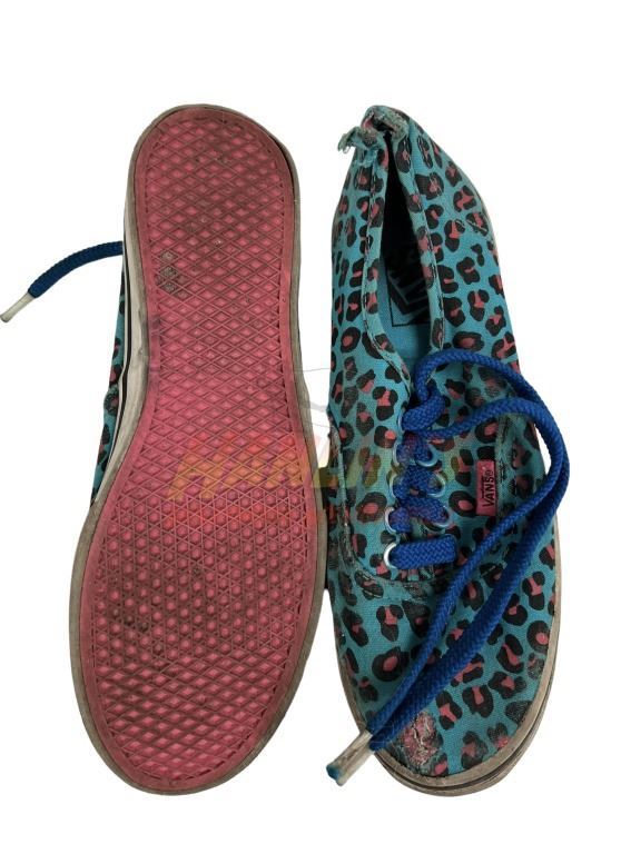 Original pair of shoes worn by "Cotty", played by Rachel Korine in the Harmony Korine directed black comedy crime film 'Spring Breakers' (2012), starring James Franco, Vanessa Hudgens, Selena Gomez, Ashley Benson and Rachel Korine. Gomez, Hudgens, Benson and Korine portray four college-aged girls on their spring break in Florida where they meet an eccentric local drug dealer (Franco) who helps them in a time of desperation, and their eventual descent into a world of drugs, crime, and violence.