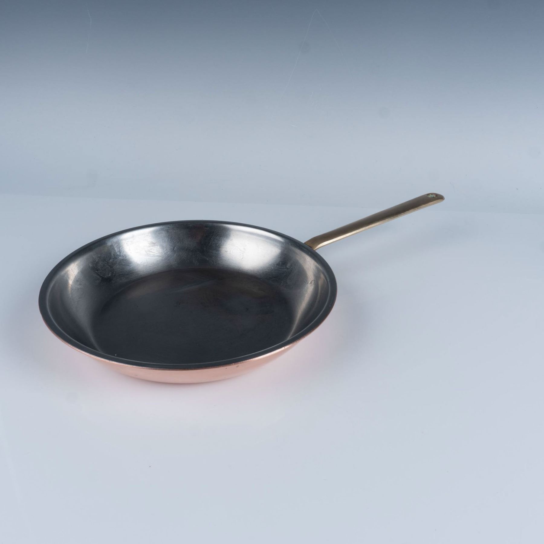 This high quality pan is engineered for exceptional heat distribution and long-lasting performance. It boasts a 0.5 mm pure copper exterior paired with a 5-layer multi-material core. Marked Spring Culinox.