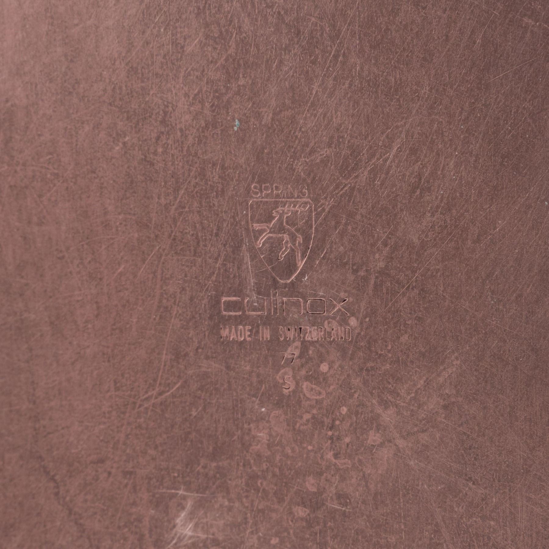 The premium quality pan was designed for optimal heat distribution and long-lasting performance. It has a 0.5 mm pure copper exterior paired with a 5-layer multi-material core. Marked Spring Culinox.