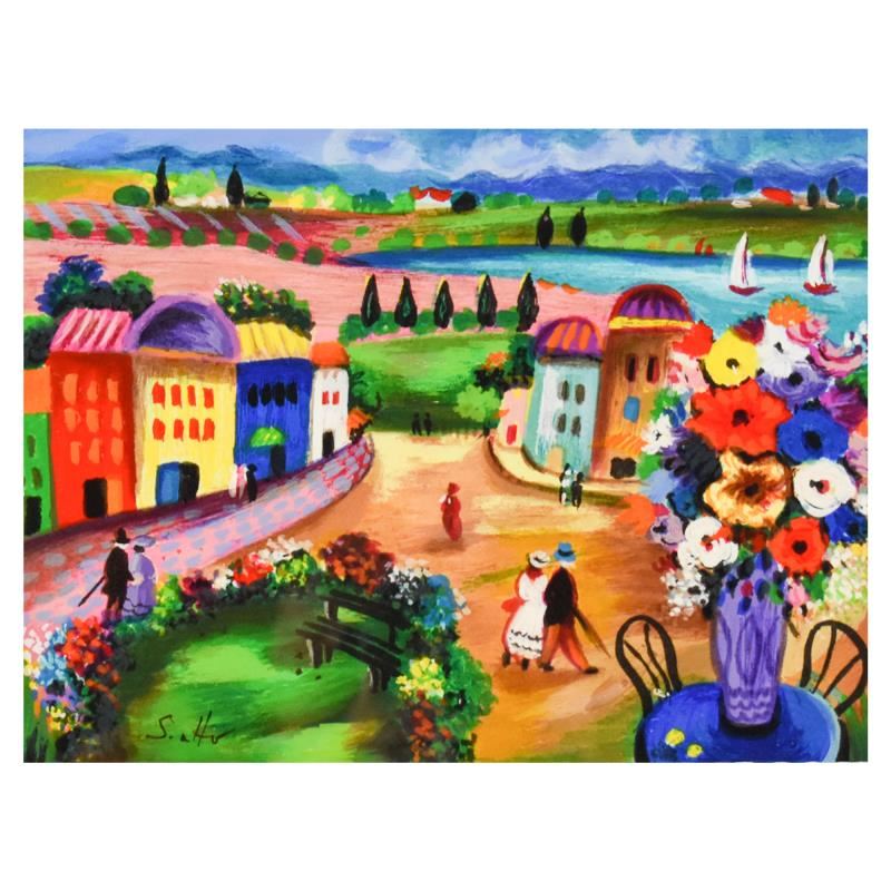 "Spring Day" is a limited edition serigraph on paper by Shlomo Alter, numbered 51/495 and hand signed by the artist. This piece comes custom framed. Includes Letter of Authenticity. Measures approx. 19" x 16" (frame), 11" x 8.5" (image).