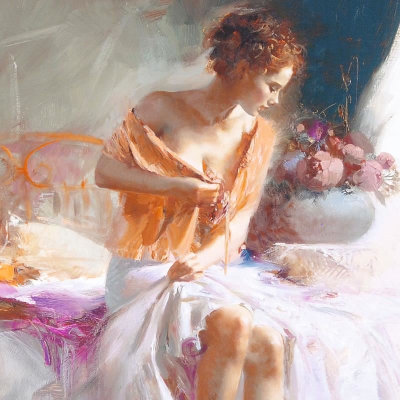 "Spring Flower" is a limited edition giclee on canvas by Pino (1931-2010), numbered and hand signed by the artist. Includes Certificate of Authenticity. Measures approx. 12" x 16" (image).