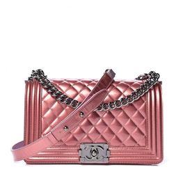 Style: CHANEL Metallic Patent Calfskin Quilted Medium Boy Flap Light Pink