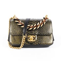 Circa Fall 2017. Chanel Flap bag is crafted from python snakeskin and features gold tone hardware, a