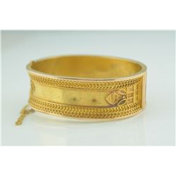 Style: Egyptian Revival 18K Antique Yellow Gold Cannetille Bangle Bracelet;