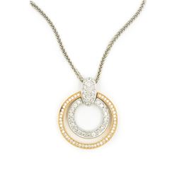 Contemporary Rose and White Gold and Diamond Double Circle Necklace;