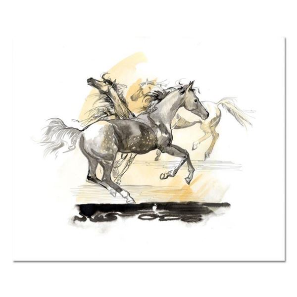 Artist: Guillaume Azoulay. Medium: Limited Edition Hand Colored Etching with Hand Laid Gold Leaf. Title: Manege II. Size (Unframed): 22" x 29.5...