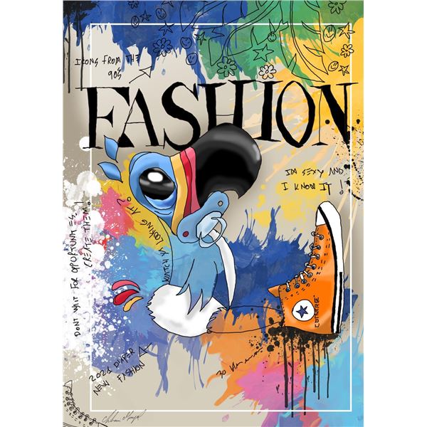 With bright colors and expressive lines, Stephen Fishwick puts a unique spin on pop culture portraits. "Toucan" is a limited edition gicle...
