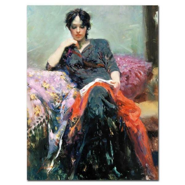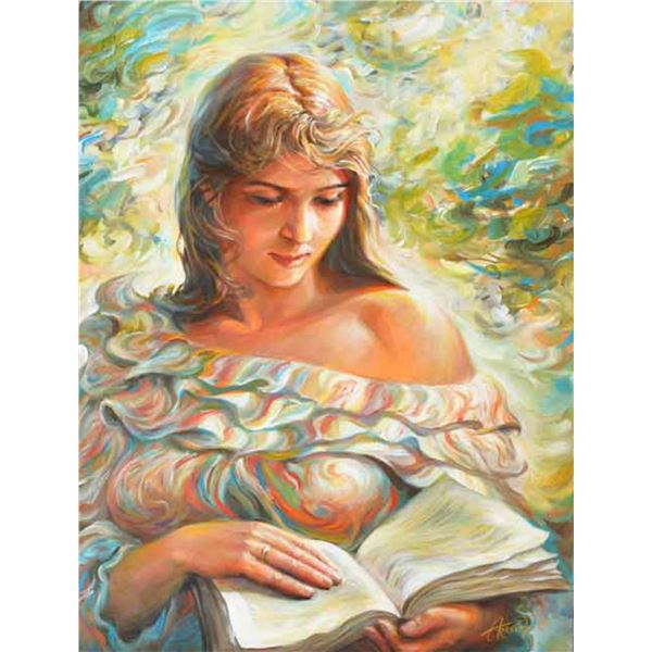 Pino (1939-2010), "Her Favorite Book" Artist Embellished Limited Edition on Canvas (30" x 40"), PP N327 - Pino (1939-2010), "Her Favorite Book" Artist Embellished Limited Edition on Canvas (30" x 40"), PP N