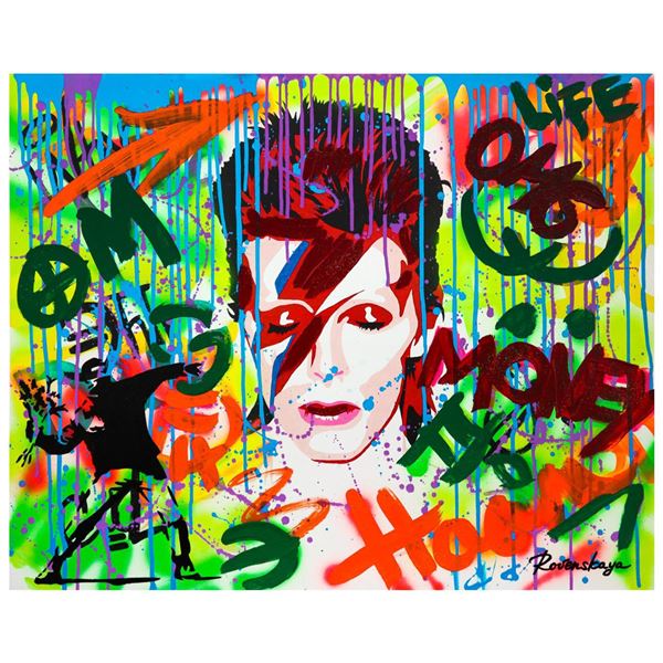 Artist: Nastya Rovenskaya. Medium: Mixed Media. Title: David Bowie. Size (Unframed): 24" x 30". Certificate of Authenticity: From the publ...