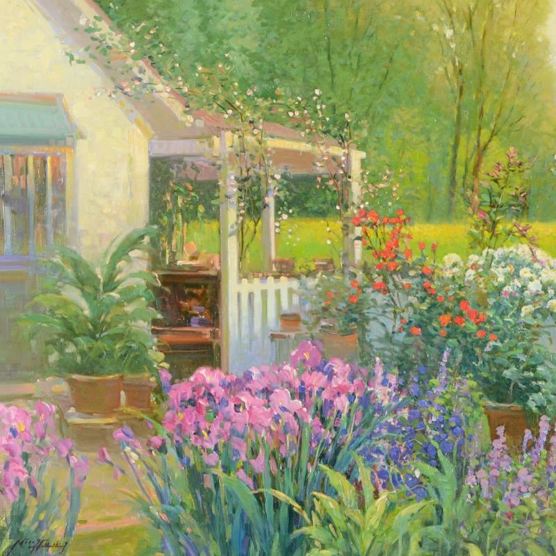 "Spring Passion" is an original oil painting on stretched canvas by Ming Feng, hand signed by the artist. Includes Letter of Authenticity. Measures approx. 30" x 24" (image).