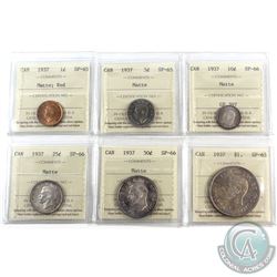 1937 Canada 6-coin Matte Specimen Set ICCS Certified SP-65 & SP-66. 1-cent SP-65 RED (a full red wit
