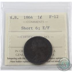 New Brunswick 1-cent 1864 Short 6; E/F ICCS Certified F-12.