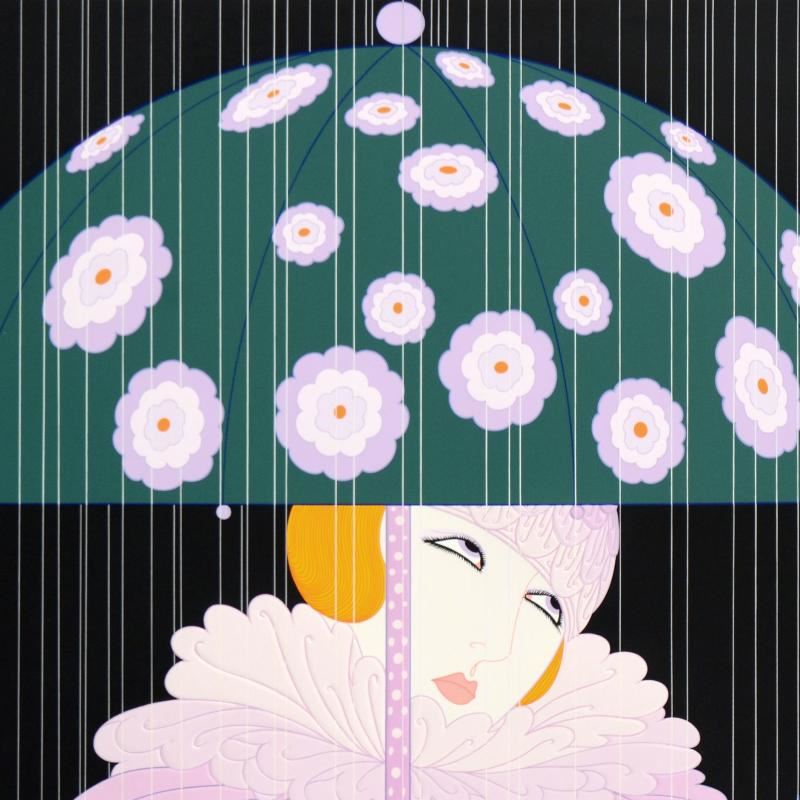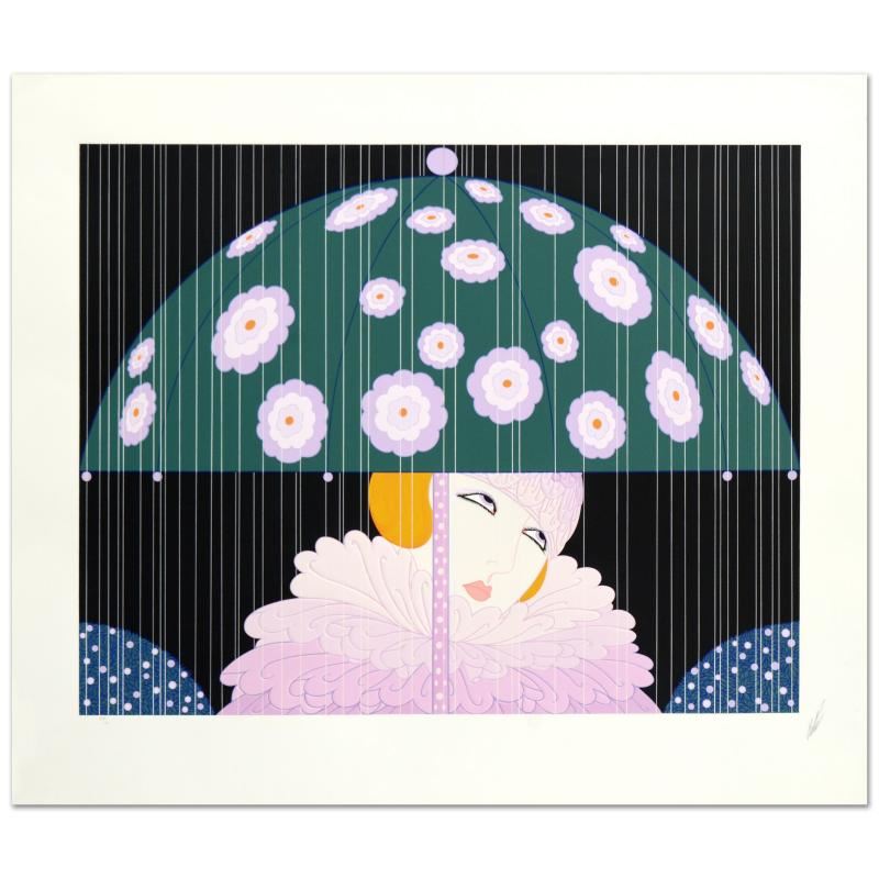 "Spring Showers" is a limited edition serigraph on paper, numbered and hand signed by the artist. Includes Certificate of Authenticity! Measures approx. 36.5" x 31" (with border), 30.5" x 24.5" (image). Due to the age of this piece and the delicate nature of the paper it may have some slight imperfections.
