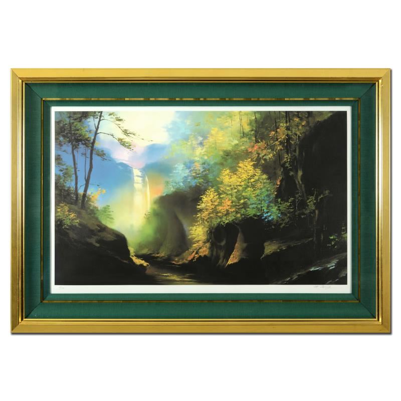 "Spring Time in Eden" is a limited edition giclee on paper by H. Leung, numbered 9/100 and hand signed by the artist. This piece comes framed. Includes Letter of Authenticity. Measures approx. 52" x 36" (frame), 40" x 24" (image). ** Please note: there is minor wear on the corners and edges of the frame. **