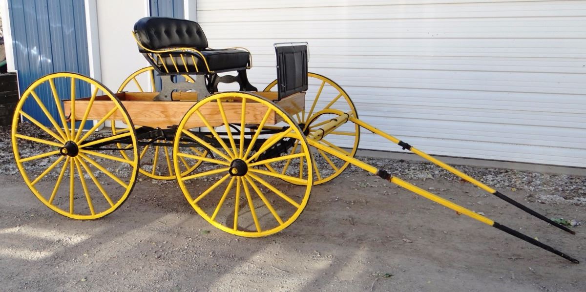 restored, wooden wheels, steel rims, shaves and tongue, excellent condition and parade ready.