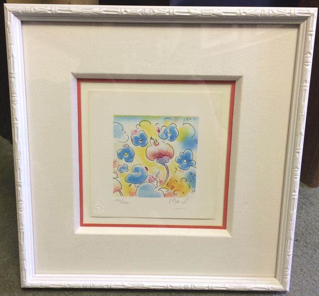 A Vintage Peter Max litho from his NYC Studio produced in the late 1970's. #150/280 Image Size 4.5x4.5" Framed Size 15x15".