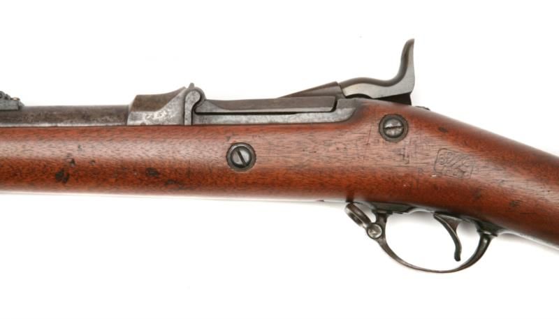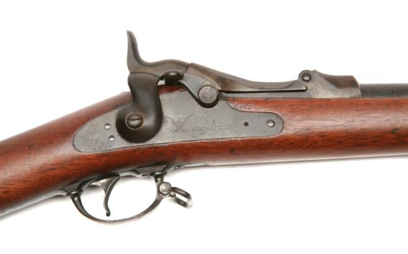 Springfield - 1873 - .45-70 - rifle, 32.5in barrel - single shot trapdoor US Military rifle w/ 2nd type M1878 ram rod - 6th type breech block - w/ sling swivels - yr. mfg.: 1886 - Very Good condition - finish to brown patina