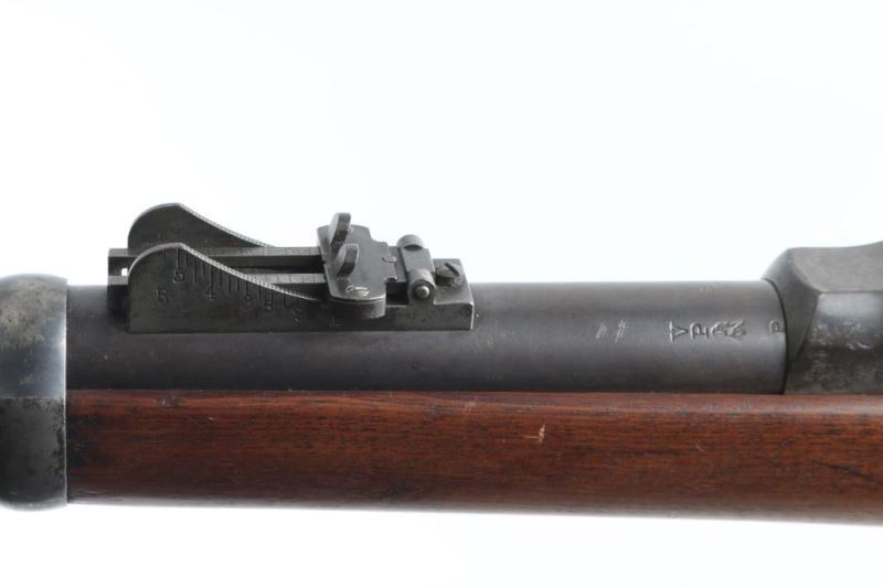 GOOD: Some minor replacement parts; metal smoothly rusted or lightly pitted in places, cleaned or re-blued; principal letters, numerals and design on metal legible; wood refinished, scratched bruised or minor cracks repaired; in good working order.