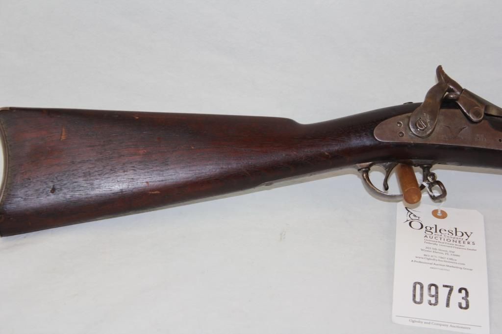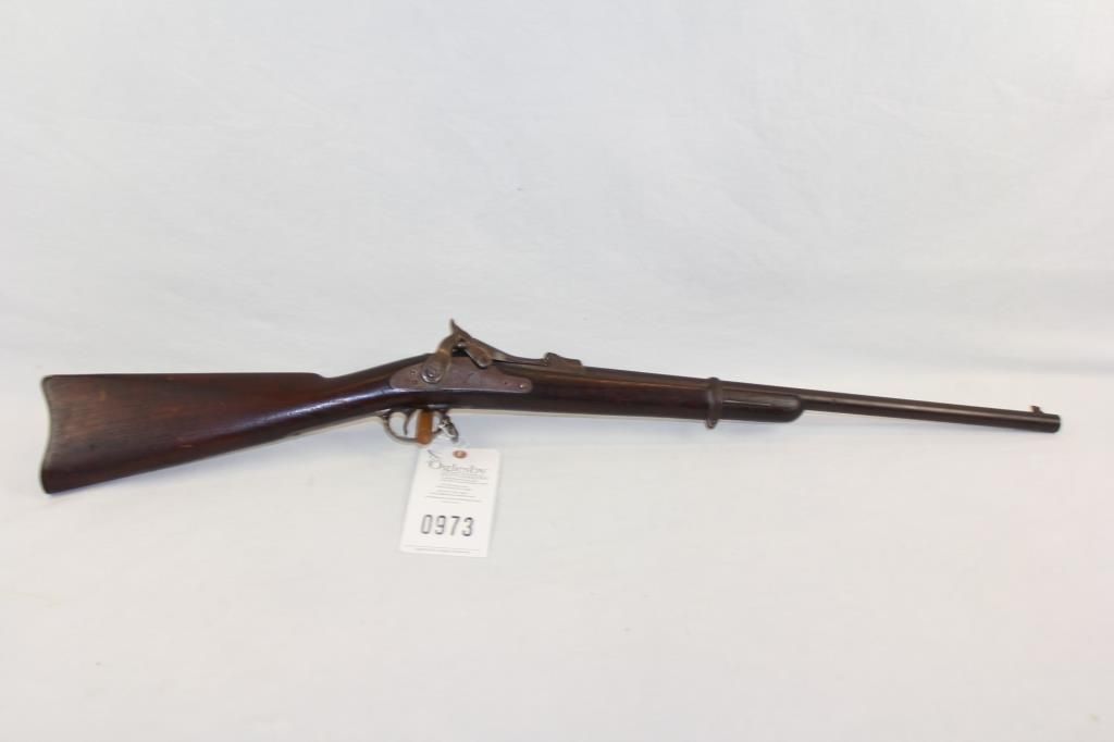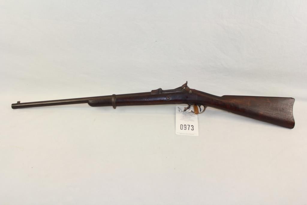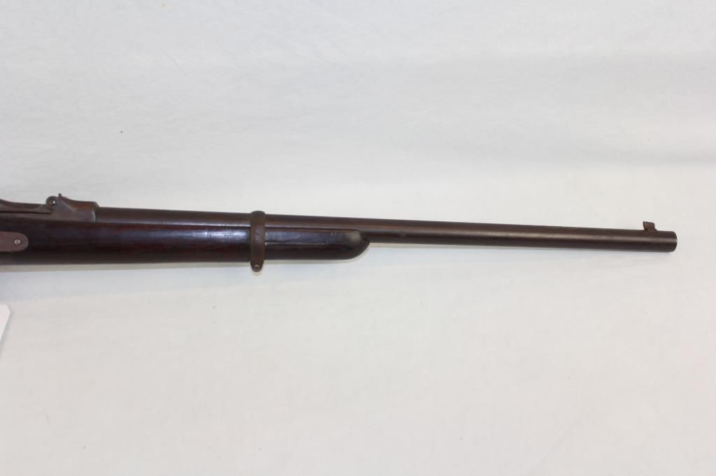 22" Barrel. No Rear Sight. Barrel Aged to Nice Plum Patina. Lock and Trigger Guard Little to No Finish. Light Handling Marks on Stock. No Rust.