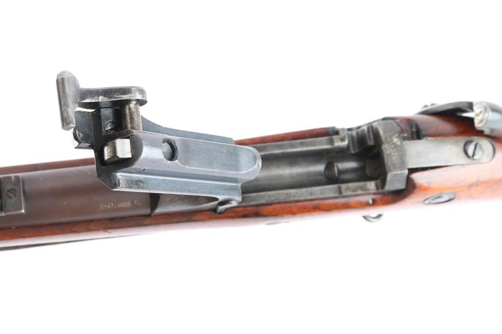 GOOD: Some minor replacement parts; metal smoothly rusted or lightly pitted in places, cleaned or re-blued; principal letters, numerals and design on metal legible; wood refinished, scratched bruised or minor cracks repaired; in good working order.