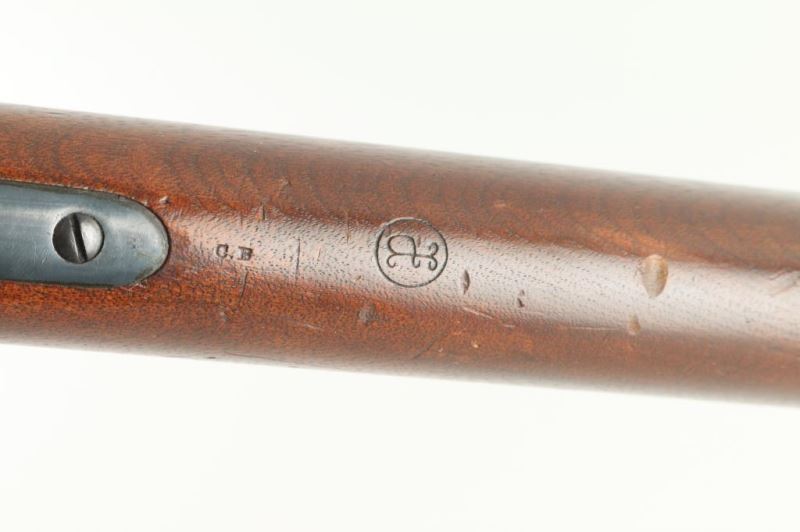 GOOD: Some minor replacement parts; metal smoothly rusted or lightly pitted in places, cleaned or re-blued; principal letters, numerals and design on metal legible; wood refinished, scratched bruised or minor cracks repaired; in good working order.