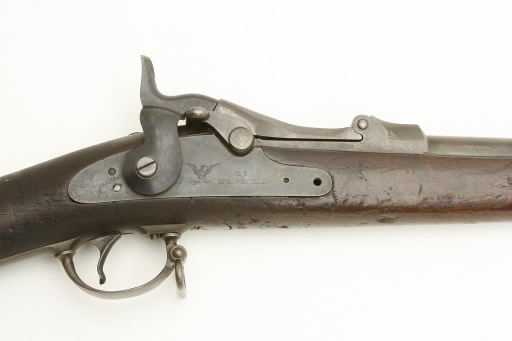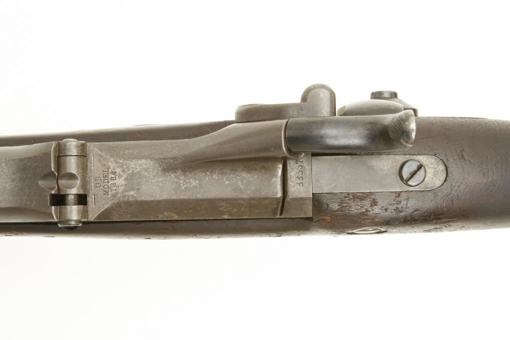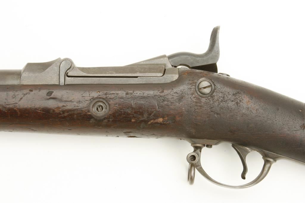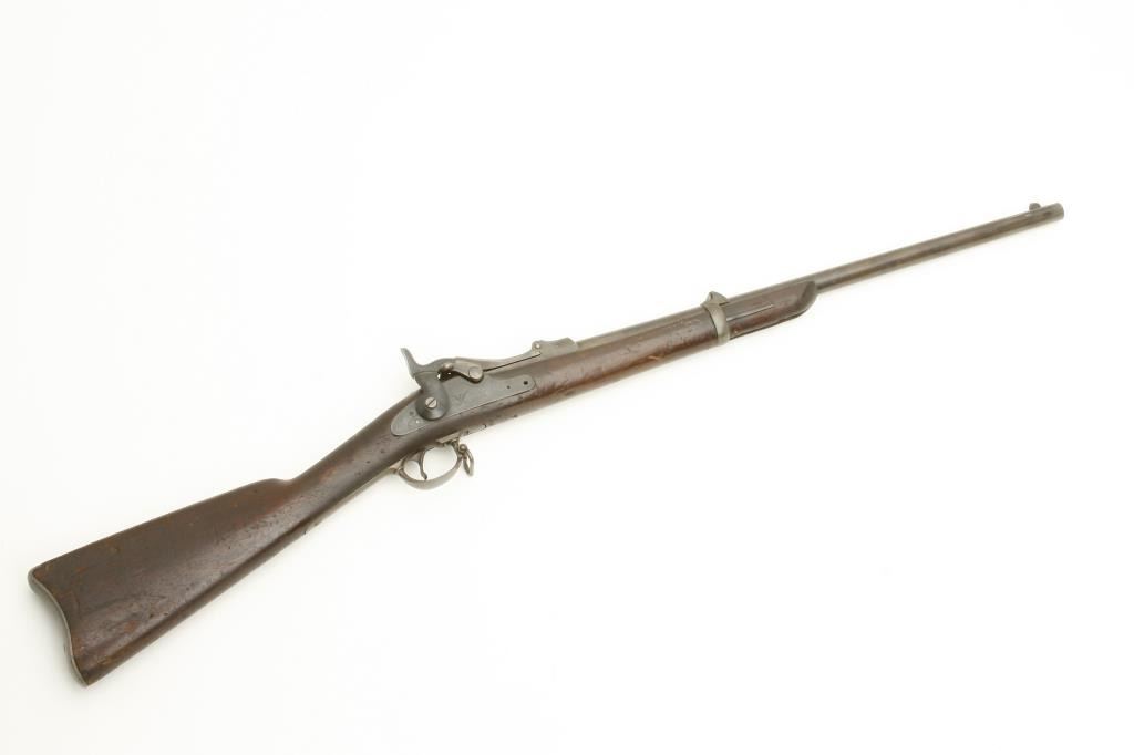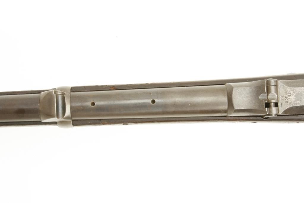 335579. Most likely for re-enactor or media production. No rear sight. Fair only. Broken and repaired at the wrist. Good bore. No saddle ring bar or ring. Lock screw I missing. (Antique) Est.: $250-500