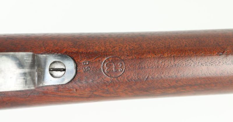 GOOD: Some minor replacement parts; metal smoothly rusted or lightly pitted in places, cleaned or re-blued; principal letters, numerals and design on metal legible; wood refinished, scratched bruised or minor cracks repaired; in good working order.