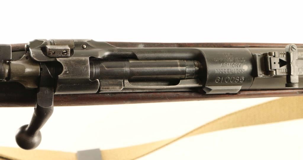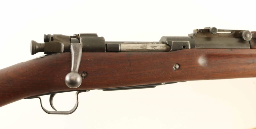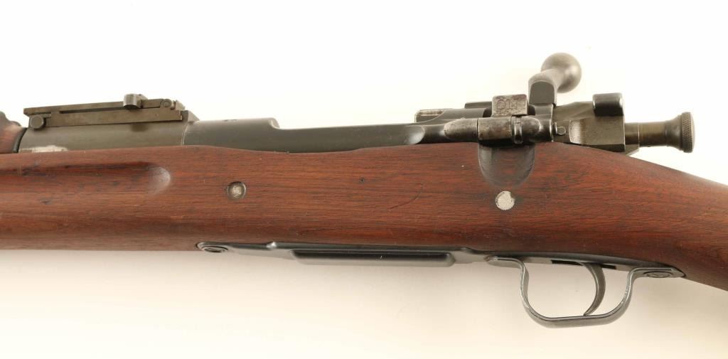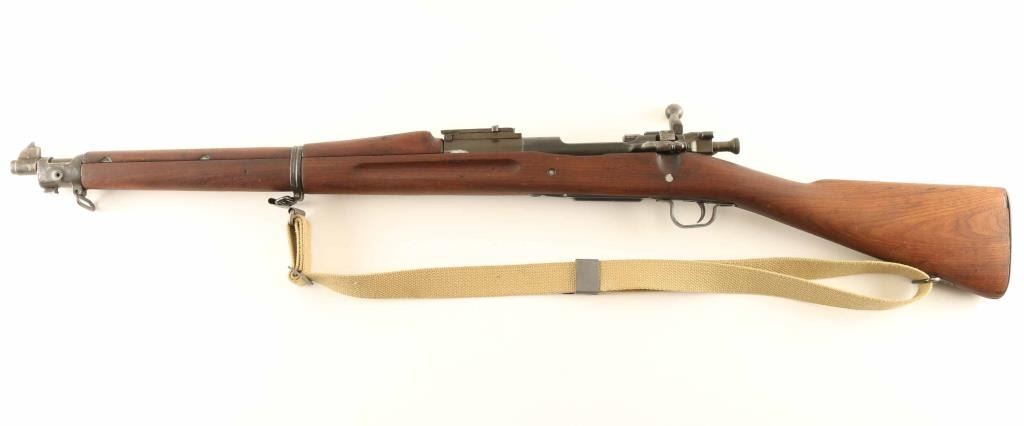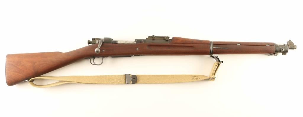 Rifle, bolt-action. U.S. military issue. Blued finish, with wooden stock, and handguard. Wood is in nice shape with "P" proof visible behind the trigger guard. About 75% blue remaining . No barrel date visible barrel is 21 1/2" long. Missing front barrel band screw. Bore is poor, dark, and pitted. 1942 Web sling attached Action is tight. NRA Condition-Fair/good. C&R Firearm.. ,