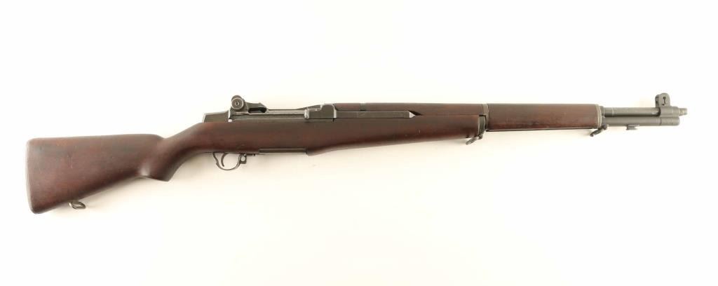 SN: 4277741 U.S. Military clip-fed semi-automatic service rifle chambered in .30-06 Springfield, manufactured circa 1954. Features a parkerized finish, 24" barrel dated “4 53", shrouded blade front sight, fully-adjustable rear aperture sight, smooth trigger, stamped trigger guard, manual safety, bayonet lug, piling swivel, smooth walnut handguards and semi-pistol grip shoulder stock with trapdoor metal buttplate. The marker code “SA” is found on many of the components including the barrel, operating rod, trigger housing, hammer and safety. The stock is marked with a ½” boxed [three stars]/[eagle] Department of Defense Acceptance Stamp and circled “P”. Rifle retains approximately 75% of its military finish which has turned to a dark green showing some scattered scratches, high point edge wear and some bright wear on/from the moving the moving parts. Action is smooth, the bore is bright with some scattered light pitting, the markings are clear and the walnut stocks are very good with some blemishes. Condition is NRA Very Good. ***C&R Firearm***