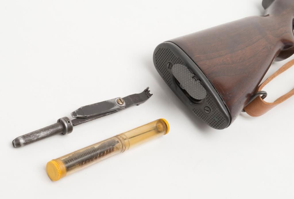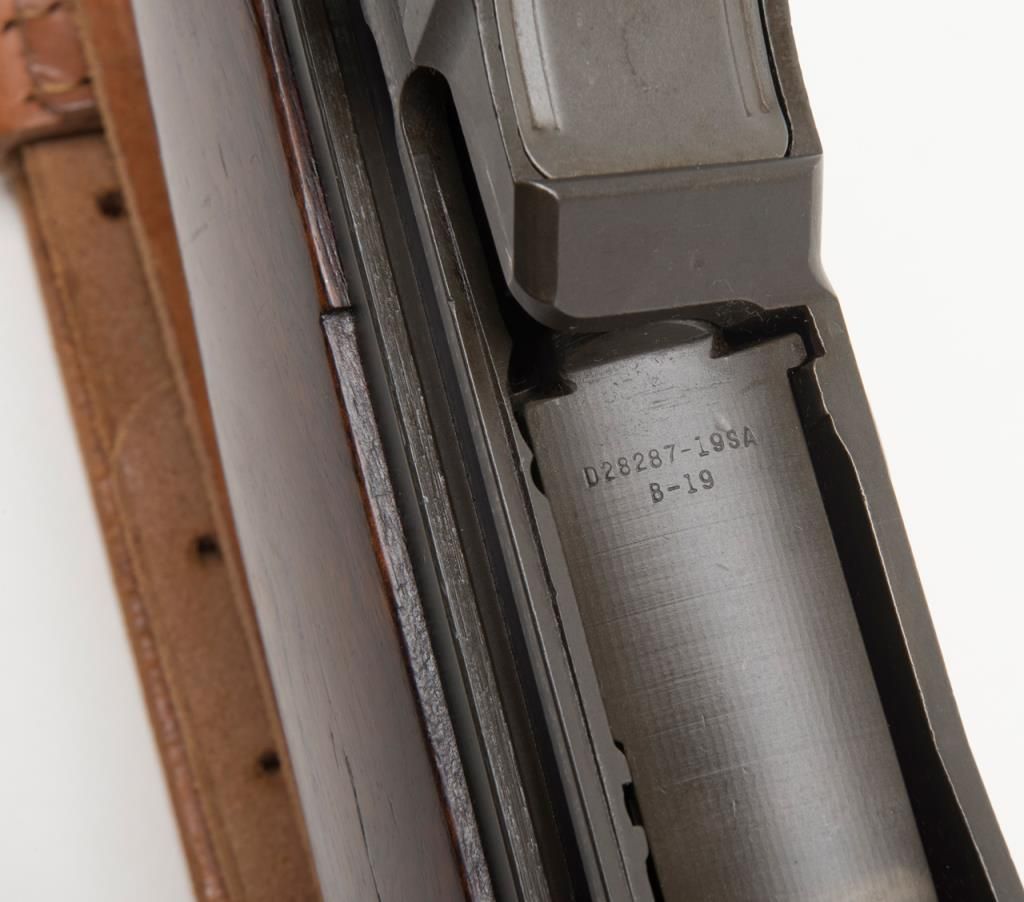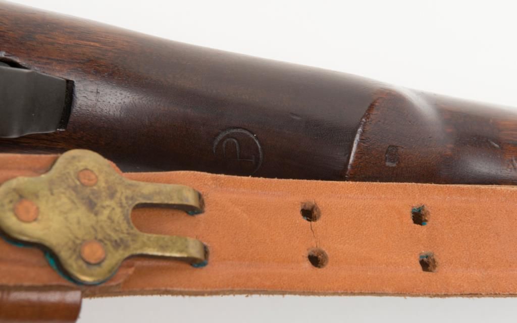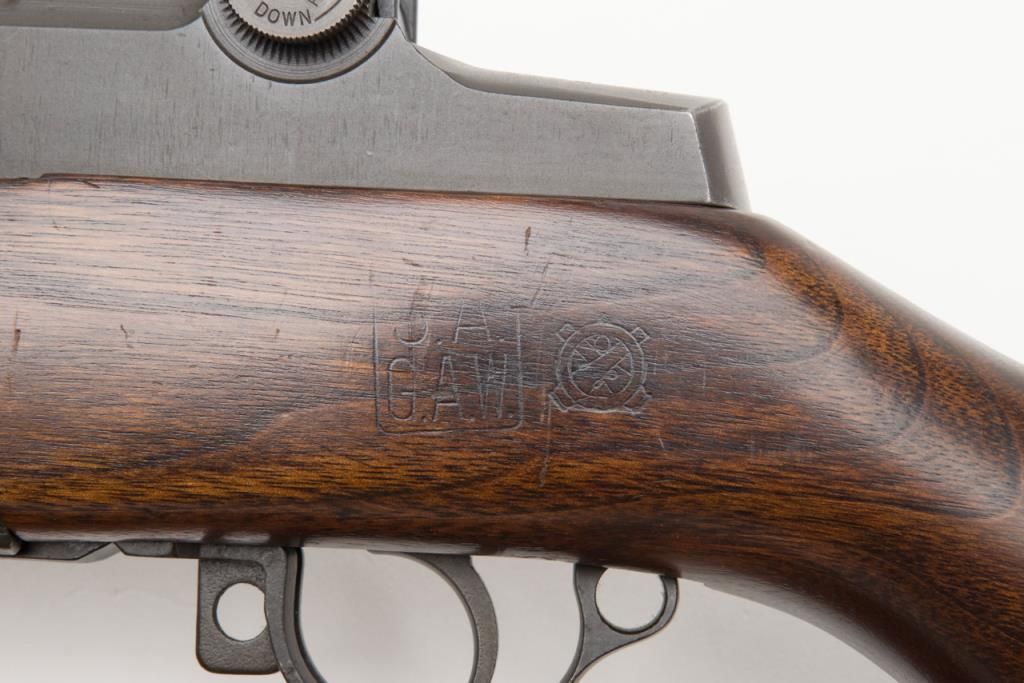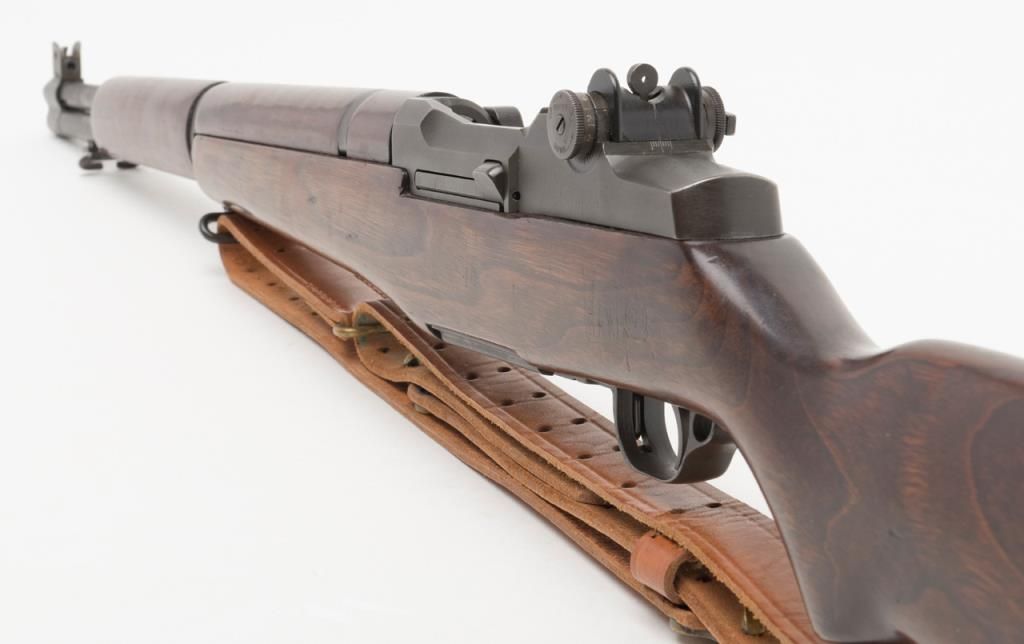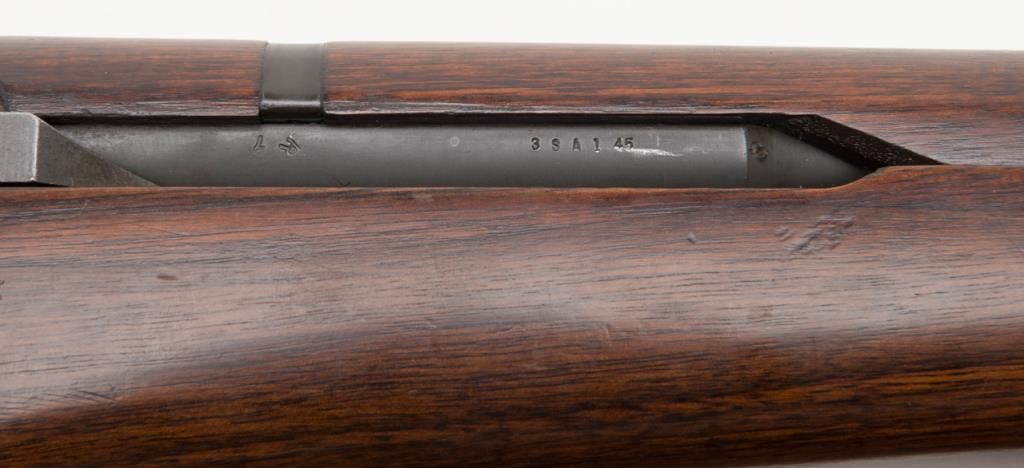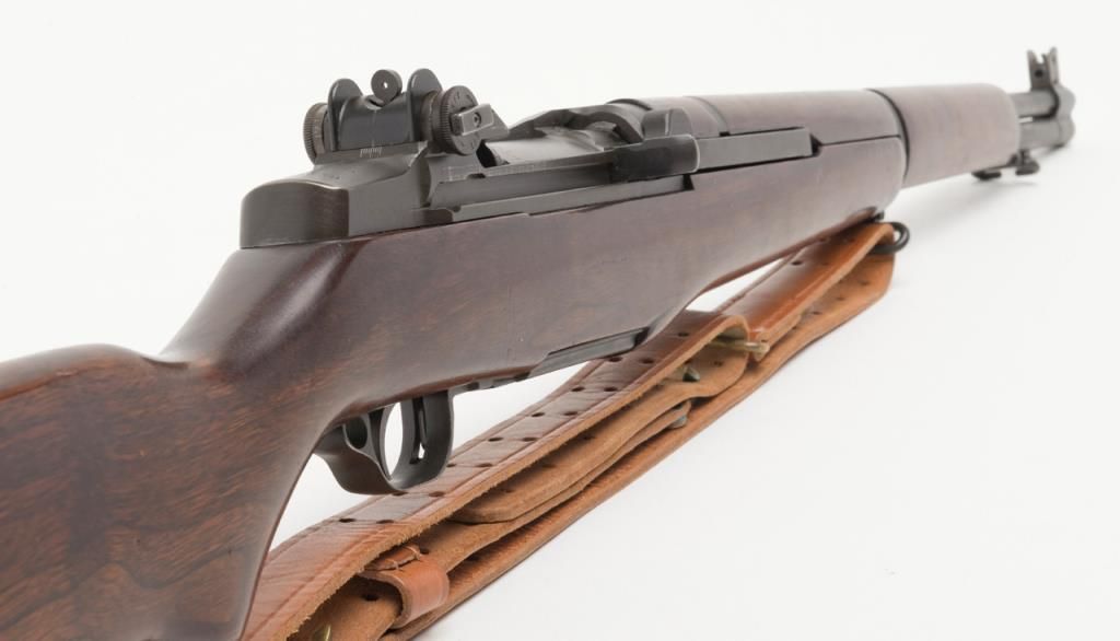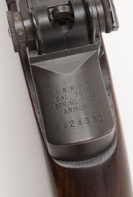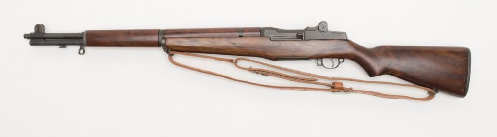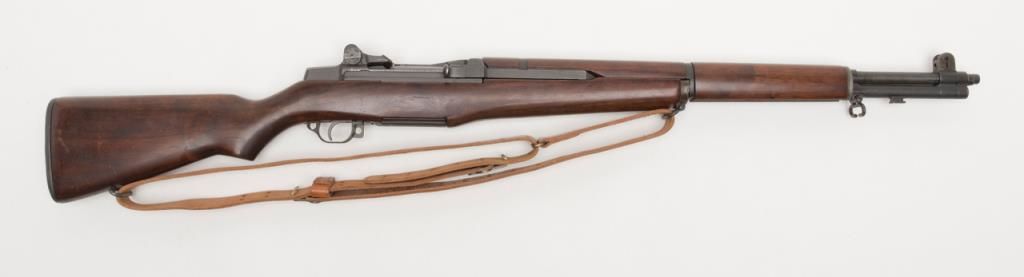 Springfield Armory M1 Garand, #3424330, .30-06 cal., 24" barrel, parkerized finish with walnut stock. Rifle is in very good to fine condition, retaining the majority of its arsenal refinish. Barrel is marked 3 SA 1 45, and has an excellentbore, action is very good. Stock is very good, as lightly sanded and oiled, with circle "P" and "S.A. G.A.W." cartouche with ordinance wheel on the left side, with a cleaning kit in the butt. Later military style leather sling dated 1964.(C&R / PPT) Est. $750-1500.