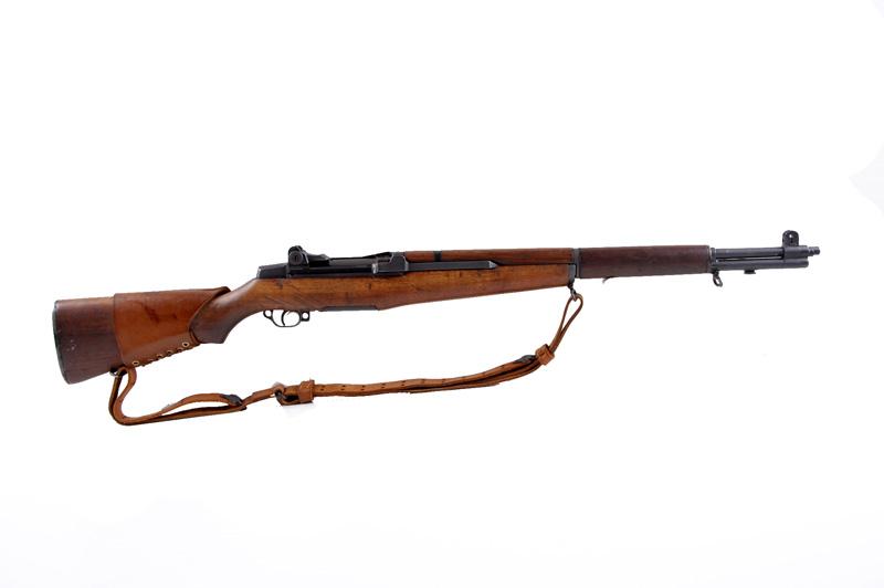 Springfield Armory M1 Garand Cal .30M1 SN:3149683, U.S. military M1 Garand battle rifle. Parkerized finish, standard hard wood stock and hand guard with P cartouche in the pistol grip, leather cheek piece laced to the stock which is marked MRT as is theSN:3149683, U.S. military M1 Garand battle rifle. Parkerized finish, standard hard wood stock and hand guard with P cartouche in the pistol grip, leather cheek piece laced to the stock which is marked MRT as is the sling. Standard 24" militarybarrel and adjustable sights with "Fed Ord Inc. S.E.M." stamped on the front of the barrel. Good bore and action. Condition: Excellent military condition, with just a few handling marks on the stock.