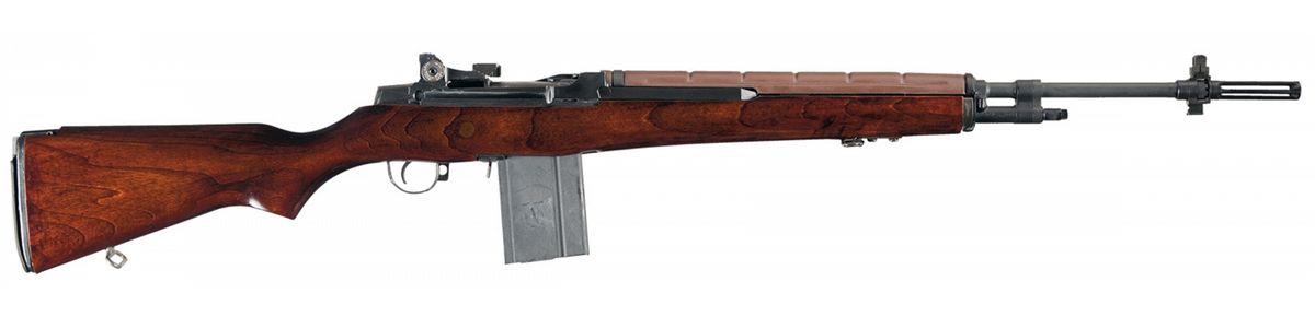 Fixed front sight and adjustable rear peep rear sight with windage drum marked "NM ENREX" and elevation drum marked "WC E". The standard GI Barrel is marked "TRW" and dated "3 63" and has been fitted with a long flash hider/bayonet lug. Bedded to a smooth walnut stock with sling swivels, a flip up checkered steel buttplate and a brown fiberglass handguard. Complete with two magazines and clear plastic front and rear sight covers.