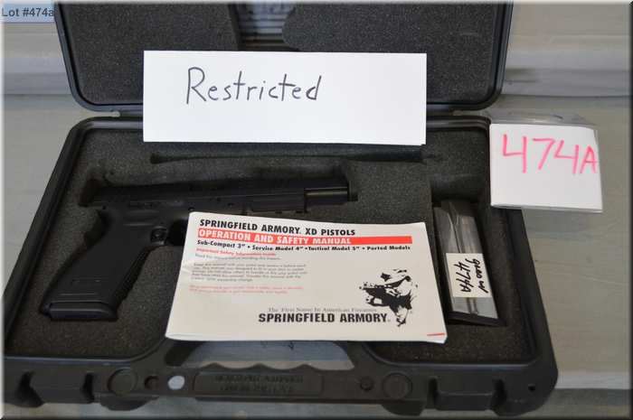 Springfield Armory Mod XD - 40 Tactical . 40 S & W cal 10 shots semi auto Pistol w/ 127 mm bbl [ appears excellent in orig foam lined box, flat black finish, w/ extra mag & booklet ] Ser # US225781 * Restricted Handgun Cert # 12047763