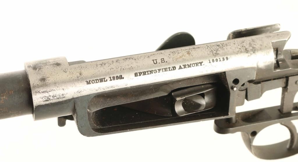 FAIR: Some major parts replaced; minor replacement parts may be required; metal rusted, may be lightly pitted all over, vigorously cleaned or re-blued; rounded edges of metal and wood; principal lettering, numerals and design on metal partly obliterated; wood scratched, bruised, cracked or repaired where broken; in fair working order or can be easily repaired and placed in working order.