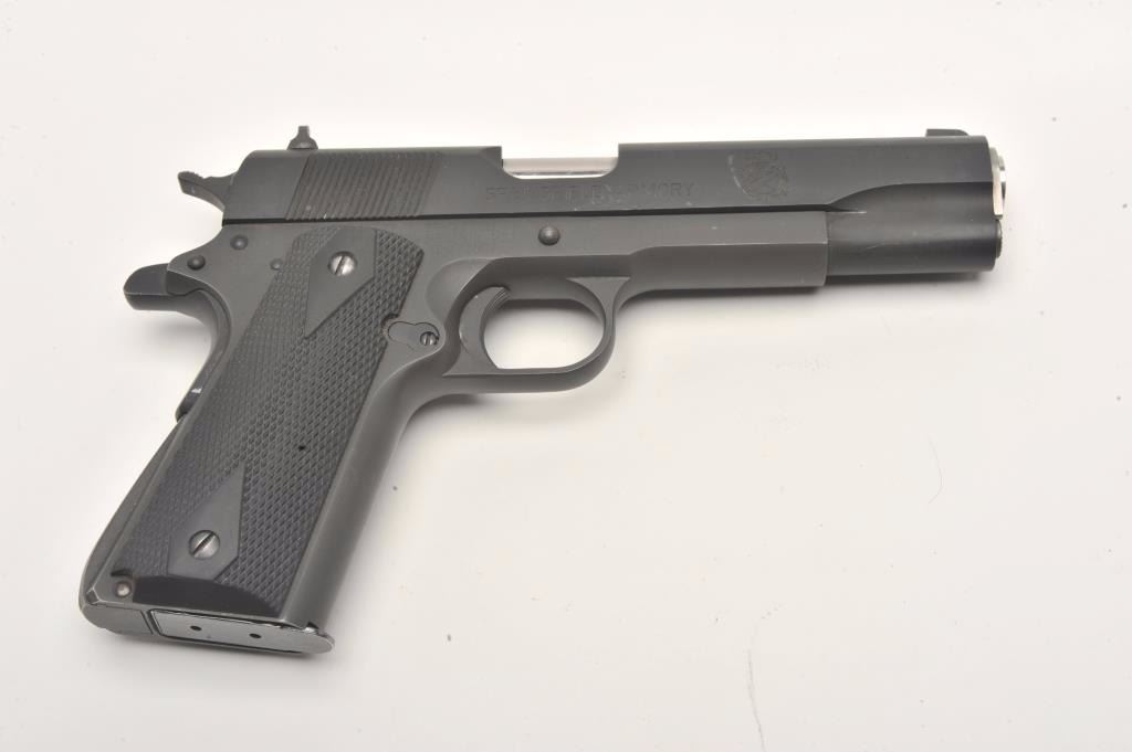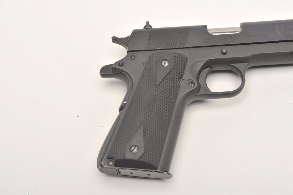 Springfield Armory Model 1911-A1 semi-automatic pistol, .45 caliber, 5” barrel, mat black finish, checkered rubber grips, S/N NM178867, in overall fine condition displaying the majority of itsoriginal finish, fine bore, crisp action, sharp markings and fine grips. (Modern/No PPT). Est.: $350-$700.
