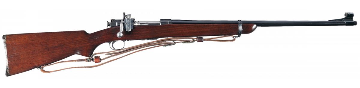 Condition: Excellent as modified (front sight), 97% original blue finish with a few light scratches and high edge wear. The buttplate has flaking and wear. The stock is also excellent with some scattered light handling marks. Mechanically excellent