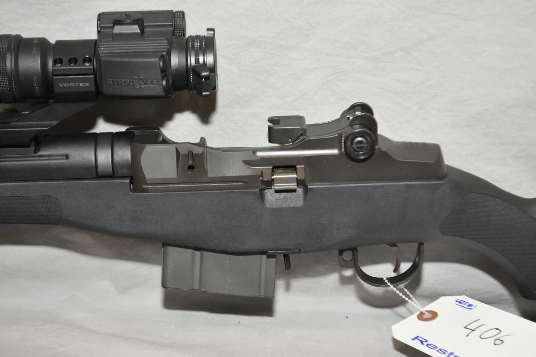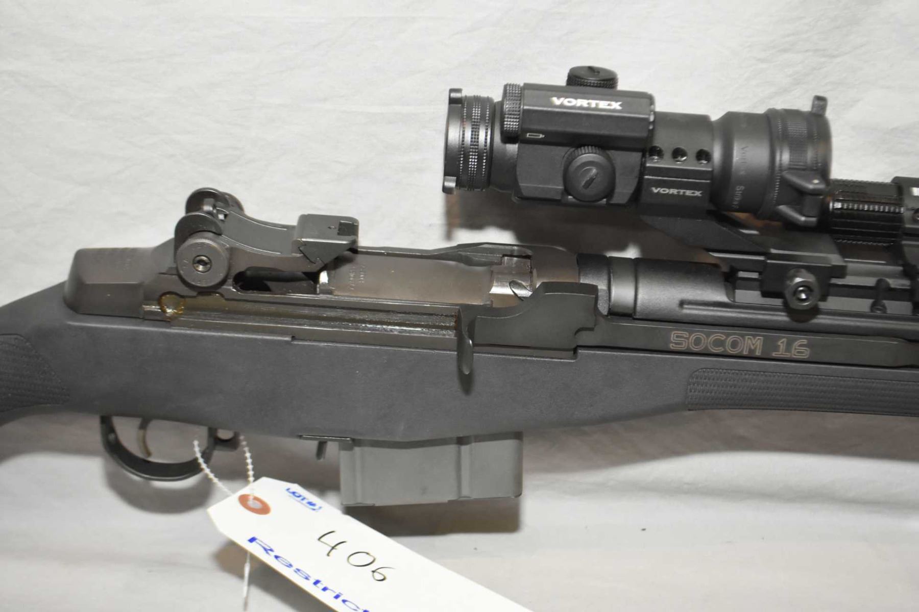 Springfield Armory Model M1A Socom 16 7.62 Nato / .308 Cal Mag Fed 5 Shot Semi Auto Rifle w/ 413 mm bbl [ appears excellent, few slight marks, green war finish, barrel sights, also fitted w/ Vortex Strikefire electric sight and Blackhawk flashlight accessory, black composite checkered pistol grip stock & forend, with green web sling, metal has few slight marks ] Ser # 321804 Restricted as Handgun Cert # 17190477 FRT # 122538 - 4